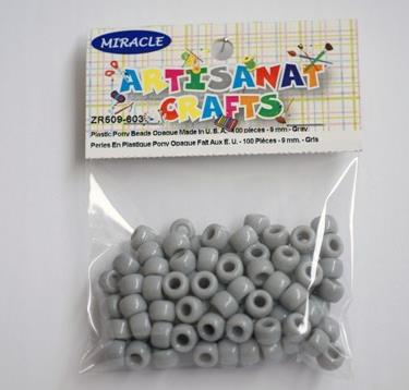 Opaque Pony Beads, 9 Mm., 100 Pieces, Gris